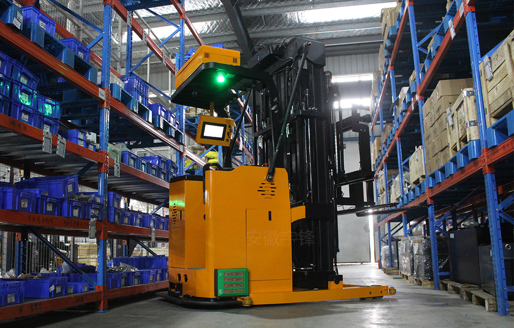 為滿足客戶精益化柔性生產需求,面對跨產線間的多點位搬運存儲,環境物料位置不固定,人員走動、車輛川流不息、物品無序堆放等復雜情況,宇鋒智能在不對現場環境做任何改造下,為三向叉AGV選擇具有復雜環境適應能力強及后期維護方便的激光導航技術,結合宇鋒智能自主研發的倉庫管理系統WMS,提供物料倉儲狀態信息,采用觸控屏人機界面,通過云終端控制,數據可追溯,在調度系統AGVS的精準指揮下叉取高度為1300mm和1100mm的貨箱,并自動識別貨架高度進行智能存取和搬運,將1300m貨箱堆垛在頂層,1100m貨箱堆垛在下三層,及時準確的完成物料的流通,大大提升倉儲庫容量和存儲效率。