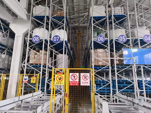 根據客戶企業原材料使用需求,項目采用雙伸位彎軌堆垛機,讓每臺堆垛機在多個巷道內自由切換,相比于一般直軌堆垛機,在滿足客戶出入庫流量需求的同時,大大降低了企業的投入成本。