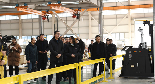 調(diào)研組一行參觀了宇鋒智能數(shù)字化展廳,相關(guān)負(fù)責(zé)人詳細(xì)介紹了公司的發(fā)展歷程、產(chǎn)品矩陣、業(yè)務(wù)布局及發(fā)展規(guī)劃等情況。隨后一同參觀了總裝車間、AGV機(jī)器人研發(fā)測試區(qū)等地,詳細(xì)了解公司生產(chǎn)經(jīng)營情況。調(diào)研組領(lǐng)導(dǎo)們仔細(xì)觀摩了宇鋒智能自主研發(fā)的AGV移動機(jī)器人、堆垛機(jī)和四向車智能立庫等智能物流裝備。