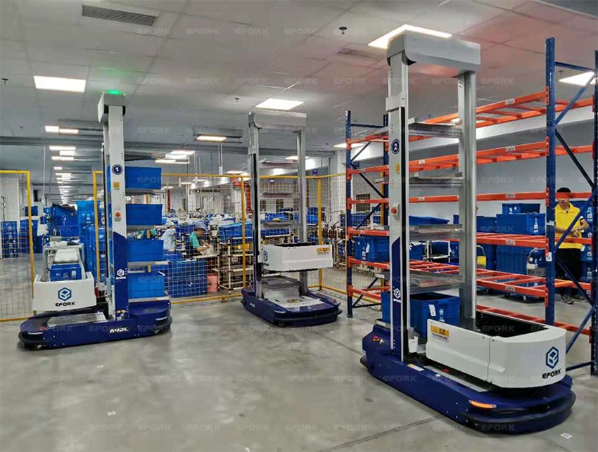 窄巷道三向叉AGV獲得中國物流運輸一等獎,貨架之間的通道僅需1.6米即可,有效的提升庫容量,增大倉庫有效使用率。