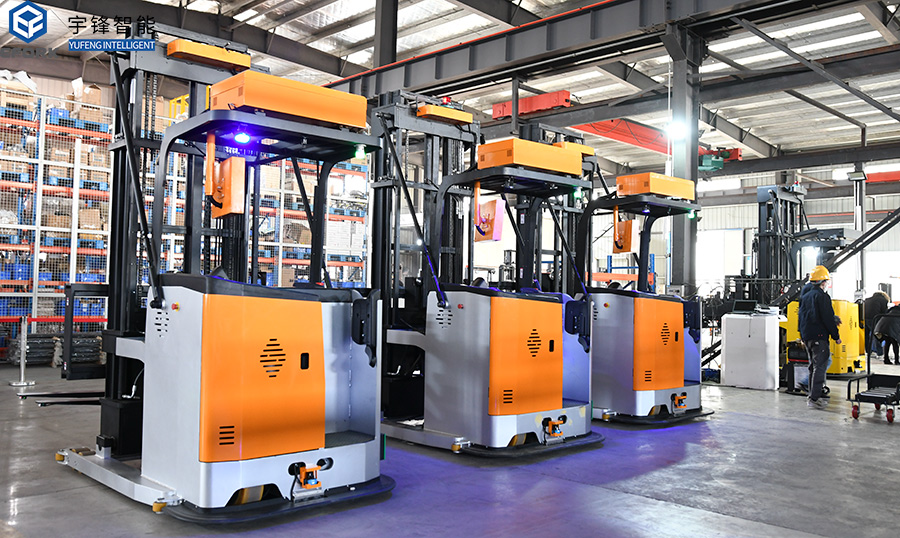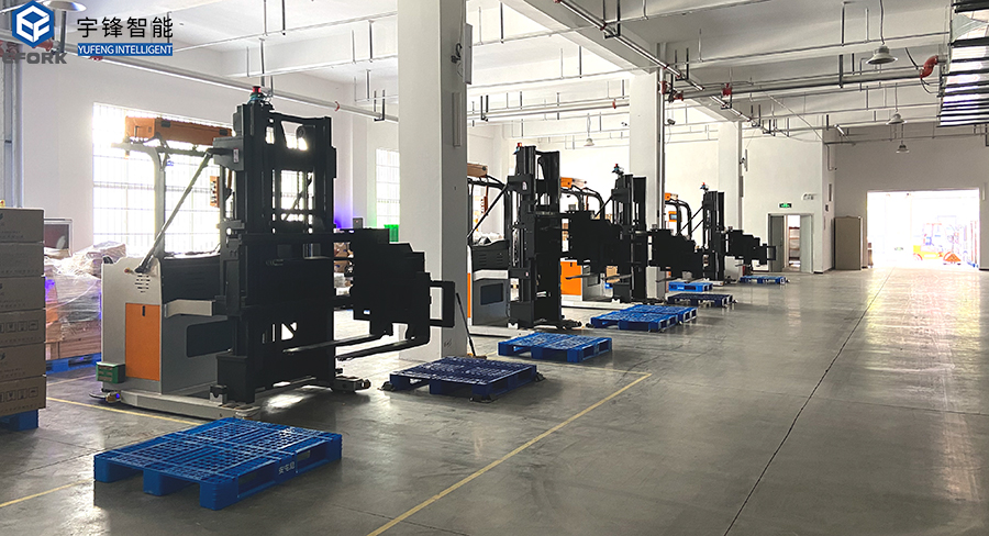 該解決方案是宇鋒智能為某大型薄膜上市龍頭企業量身打造的自動化物料搬運及存儲系統,采用5臺窄巷道三向叉式AGV進行自動配送,系統方案按照工廠布局、工藝流程需求而設計,實現物料、空托盤的自動配送,大大降低了叉車對人的需求,達到節約勞動力、提高生產效率、實現智能化的目的。本項目的實施屬于薄膜機械行業首個物料搬運及存儲系統項目,同時采用行業內首創2噸重載窄巷道三向叉AGV及專屬屬具,該項目的落地是安徽宇鋒2020年度三向叉AGV在技術方面的重大突破,將為AGV在薄膜機械行業的應用帶來新思路。