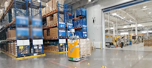 本項目采用專一AGV兼容二十種以上托盤在極窄的通道進行柔性轉運,實現原材料,半成品,成品之間轉運;同時實現多種AGV之間高度糅合,高效配合,實現工廠全天24H不間斷生產。進一步實現貨物擺放間隙縮小到75mm,最大化利用了倉儲的空間,極大的提高了客戶的存儲量。