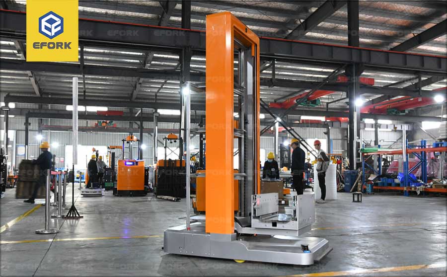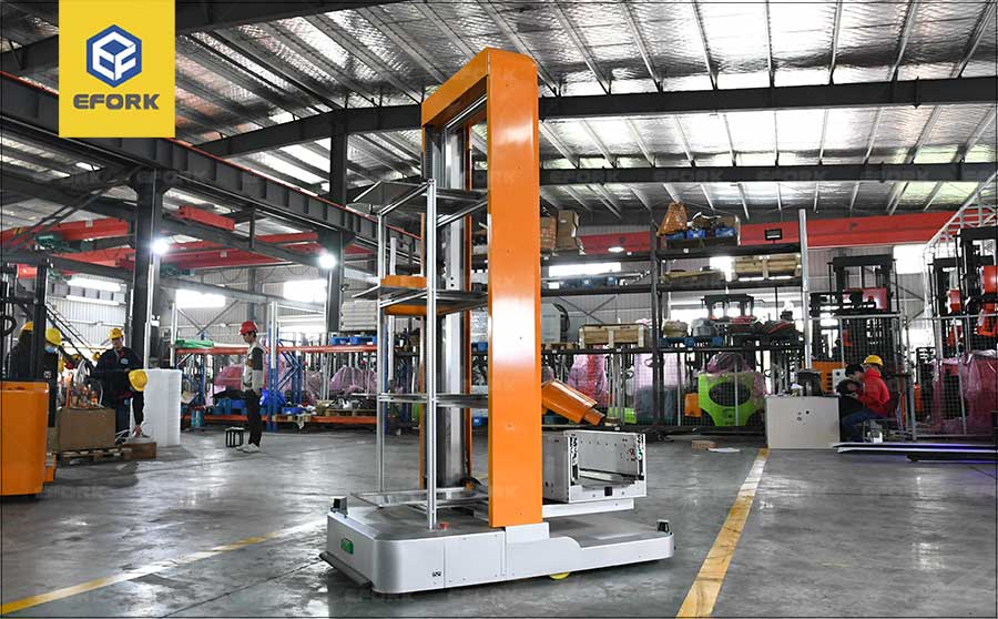車體結(jié)構(gòu)緊湊,寬度小,舉升高,側(cè)向插取貨物,堆垛通道小,提升倉(cāng)庫(kù)的庫(kù)容量;