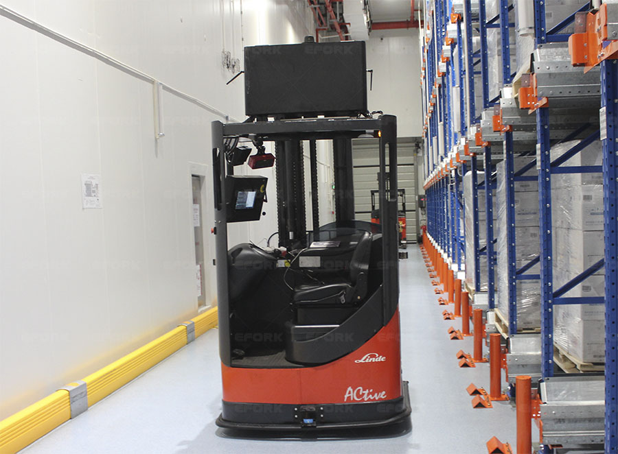 叉車改造AGV:本次客戶現(xiàn)場(chǎng)使用的是林德R14S系列電動(dòng)托盤堆垛車,安徽宇鋒在現(xiàn)有叉車上安裝有可旋轉(zhuǎn)的激光掃描器,在運(yùn)行路徑沿途的墻壁或支柱上安裝有高反光性反射板的激光定位標(biāo)志,AGV叉車依靠激光掃描器發(fā)射激光束,然后接受由四周定位標(biāo)志反射回的激光束,車載計(jì)算機(jī)計(jì)算出車輛當(dāng)前的位置以及運(yùn)動(dòng)的方向,通過(guò)和內(nèi)置的數(shù)字地圖進(jìn)行對(duì)比來(lái)校正方位,從而實(shí)現(xiàn)物料自動(dòng)搬運(yùn)。