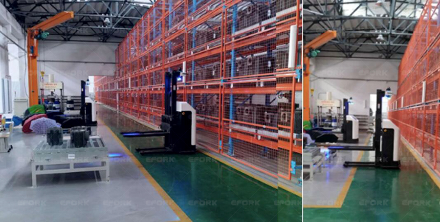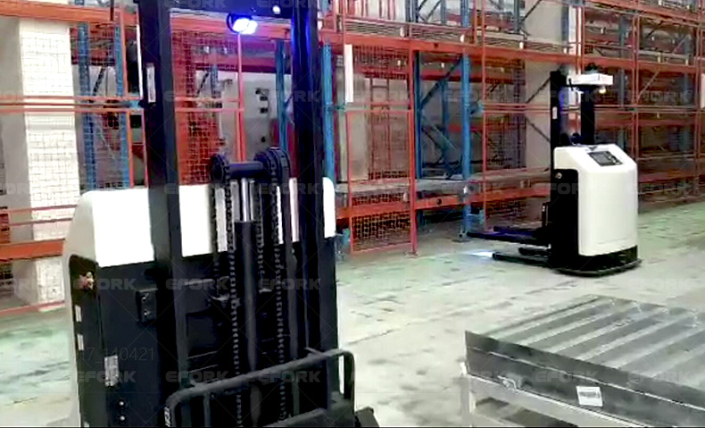 技術亮點:該項目使用我司自主設計研發的窄通道專用車體,AGV可在2米通道內實現直角堆垛作業,轉彎半徑<1300mm,車體小巧靈活,最大載重2000Kg。