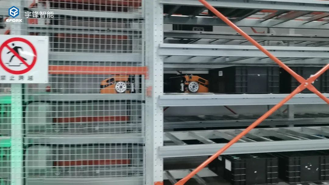 宇鋒智能為某知名家用電器企業提供了一套穿梭車智能倉儲解決方案。通過對客戶的需求數據,現有設備,物料存儲方式,業態模式等方面深度解析,該方案采用智能化系統配合庫區硬件的模式,以更低的企業運營成本、更高的作業效率、更優的管理方式,實現物料管控一體化的高效運轉。此方案的穿梭車系統主要由料箱式穿梭車、運行軌道、貨架系統、換層提升機、雙工位料箱提升機、軟件控制系統組成,核心設備自主研發,經過系統科學的周期性測試,保證了設備運行的穩定可靠,系統可用性強,通過上游WMS系統,下達指令到WCS系統,來完成訂單的出、入庫,同時也可以監控設備運行狀態,進行遠程預防性維護。