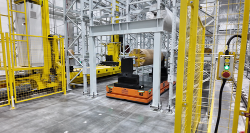 ●針對(duì)布卷料軸尺寸大(長3.2米、重達(dá)1噸)的特點(diǎn),宇鋒智能定制開發(fā)非標(biāo)潛伏式全向式AGV,實(shí)現(xiàn)布卷的自動(dòng)化搬運(yùn)。該方案具備更強(qiáng)的靈活性與可移動(dòng)性,有效降低廠房布局成本,提升空間利用率,確保物料搬運(yùn)過程安全、無變形。