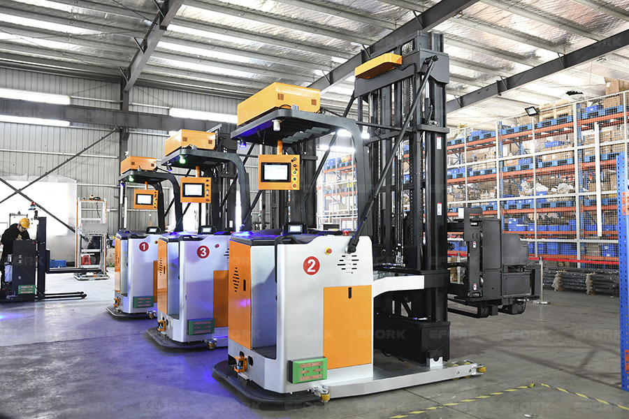 項目簡介:該項目采用2臺窄巷道三向叉AGV,5臺堆垛式叉車AGV,三向叉AGV主要滿足倉庫每天的出入庫需求,堆垛式叉車AGV主要為滿足產線之間的物料運轉需求。
