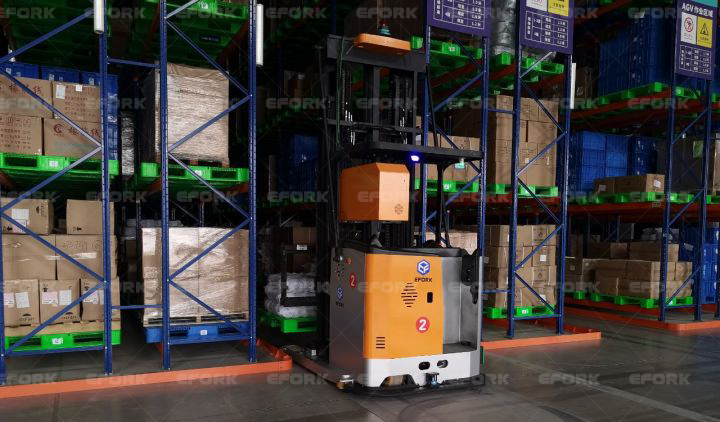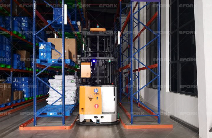 采用自主設(shè)計的AGV車體,使用蒂森克虜伯高標(biāo)號鋼材,在高舉升時,門架形變小,取放貨物任務(wù)調(diào)試簡單便捷;車體結(jié)構(gòu)由我司研發(fā)部設(shè)計出圖生產(chǎn),使用窄通道貨架使用;獨特的三支點車體底盤結(jié)構(gòu)設(shè)計,使AGV的著地效果更好;可變速的液壓提升系統(tǒng),取放貨物更加平穩(wěn),精度高;