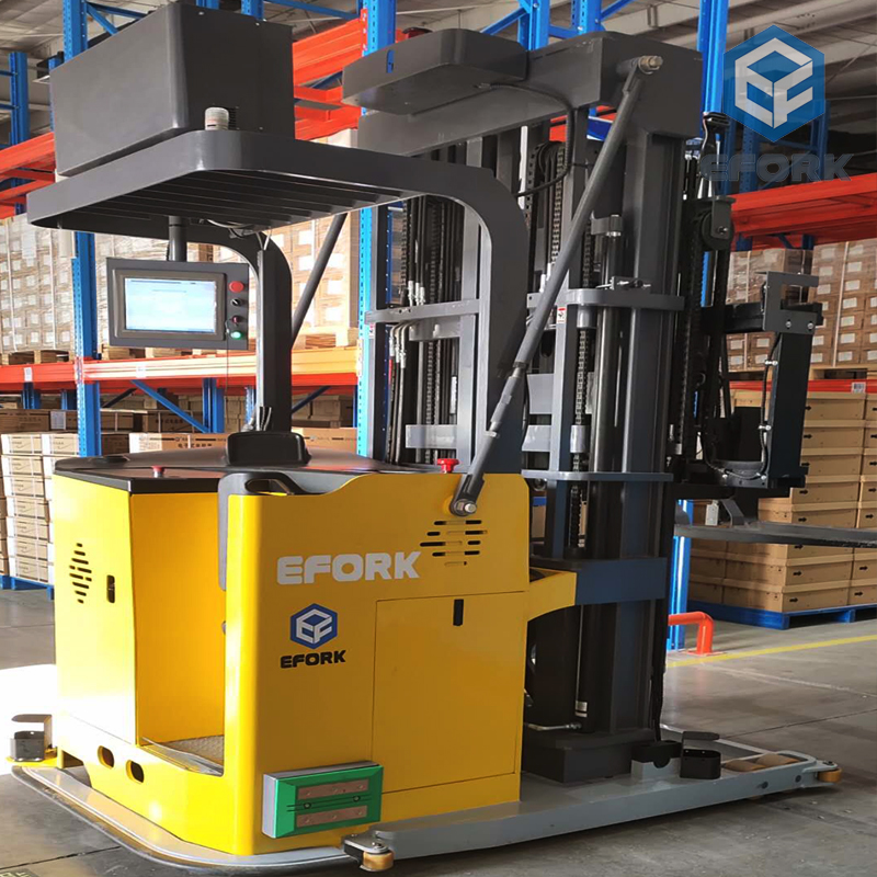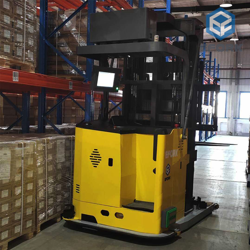 采用自主設計的AGV車體,使用蒂森克虜伯高標號鋼材,在高舉升時,門架形變小,取放貨物任務調試簡單便捷;車體結構由我司研發部設計出圖生產,使用窄通道貨架使用;獨特的三支點車體底盤結構設計,使AGV的著地效果更好;可變速的液壓提升系統,取放貨物更加平穩,精度高;